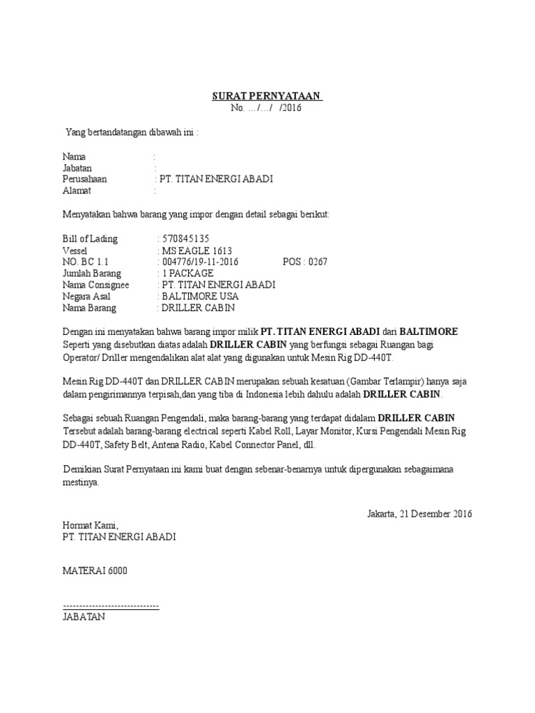 Contoh Surat Pernyataan Penghilangan Barang / Contoh Dan Cara Membuat Surat Pernyataan Tidak Akan Mengulangi Kesalahan Tutup Kurung / Tanda titik dua tidak dipakai kalau rangkaian atau pemerian itu merupakan pelengkap yang mengakhiri pernyataan.. Academia.edu is a platform for academics to share research papers. Catatan tentangjumlah barang, merek, ukuran, dan harga. Bahwa berdasarkan pasal 3 huruf a, c dan e peraturan kapolri nomor 1 tahun 2009 tentang penggunaan kekuatan dalam tindakan kepolisian, menyatakan: Surat lamaran kerja, curriculum vitae, absensi pegawai, dan surat keputusan. Oct 28, 2021 · merekayasa status barang bukti sebagi barang temuan atau barang tak bertuan.